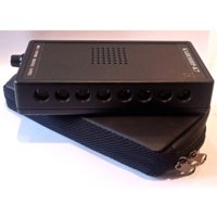 компактная модель с 8-ю излучателями ультразвуковой помехи; работает бесшумно, блокирует микрофоны на расстоянии до 7 м; имеет собственный аккумулятор, время автономной работы — 2 часа; в комплекте с прибором поставляется небольшой проводной пульт ДУ; для маскировки можно использовать сумку-клатч (идет в комплекте).